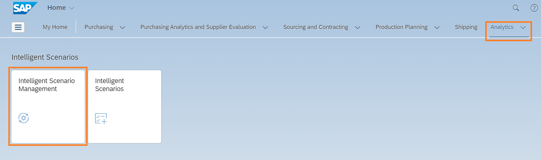 Open the Fiori Launchpad by clicking here. Click the Intelligent Scenario Management app.