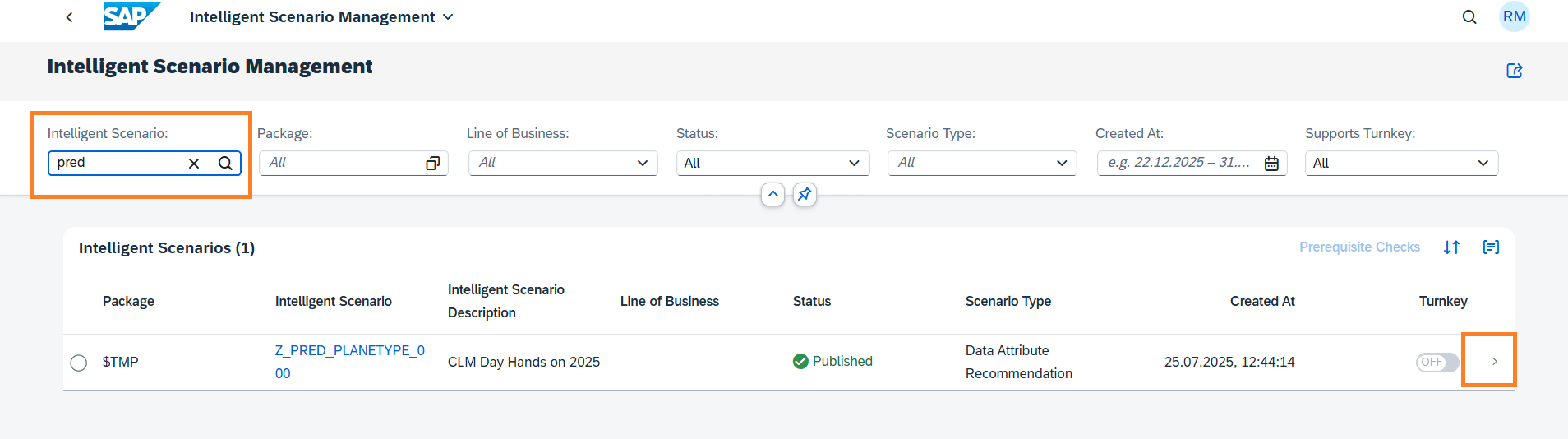 Z_PRED_PLANETYPE_###, where ### is your attendee id). Navigate to the details page by clicking the > icon.
