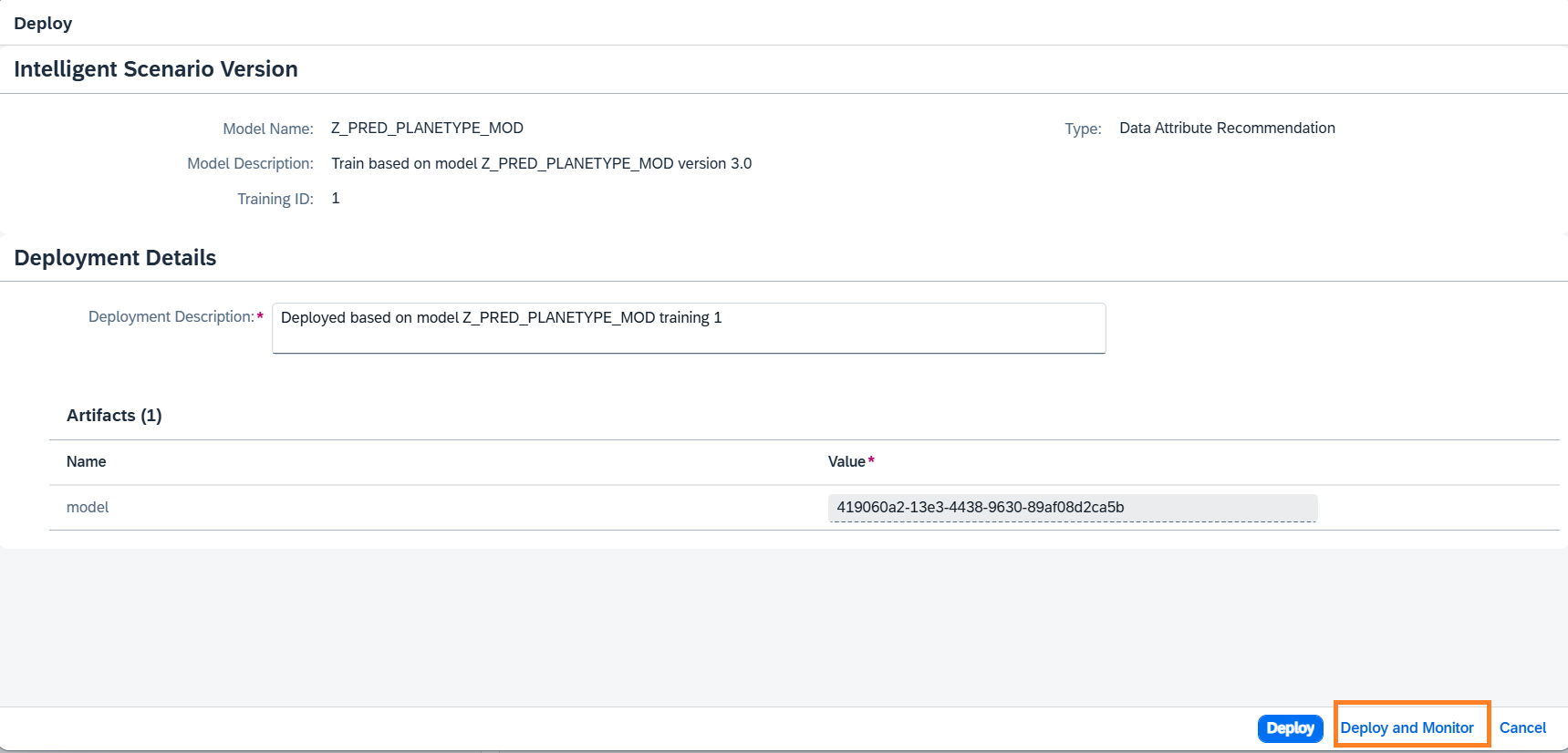 Verify the details in the Deploy dialog . Click Deploy and Monitor button.