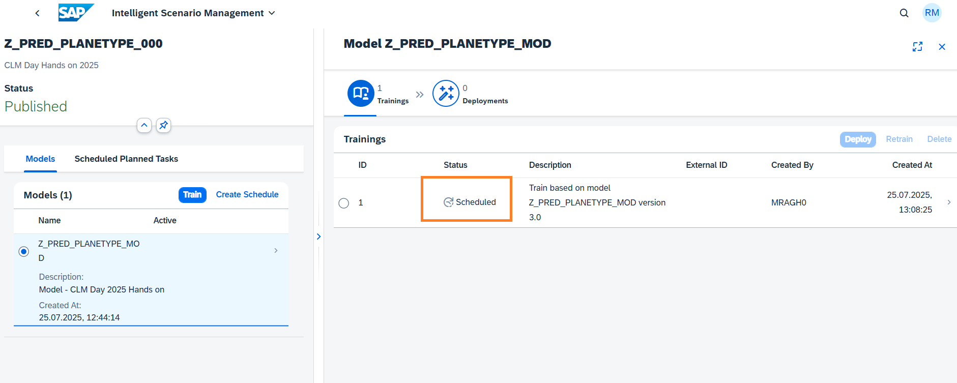 A new Training will be created in Scheduled status.