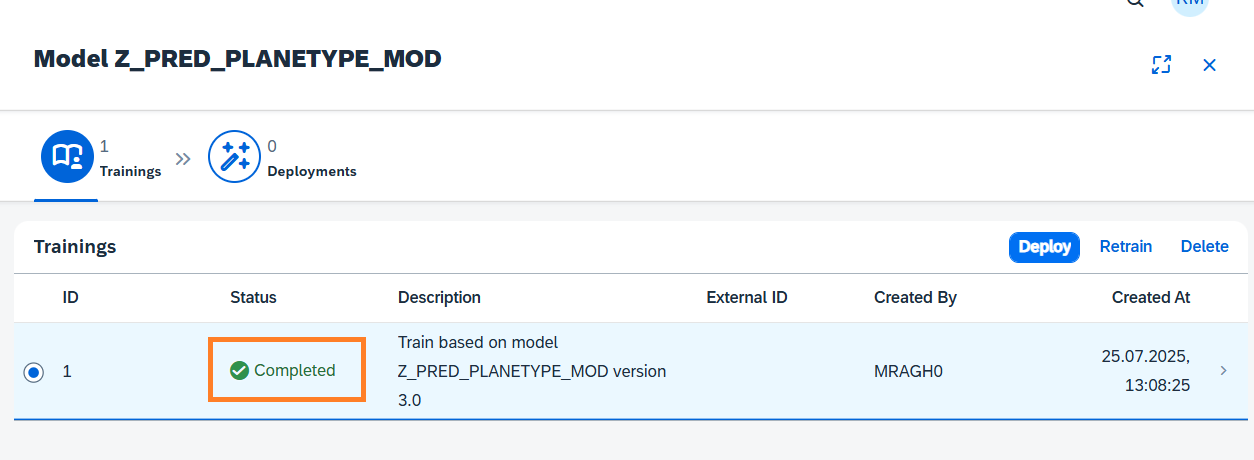 Wait for the status of the Training to change to Completed.