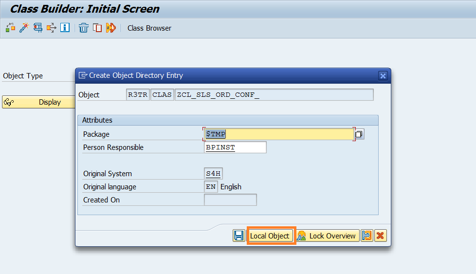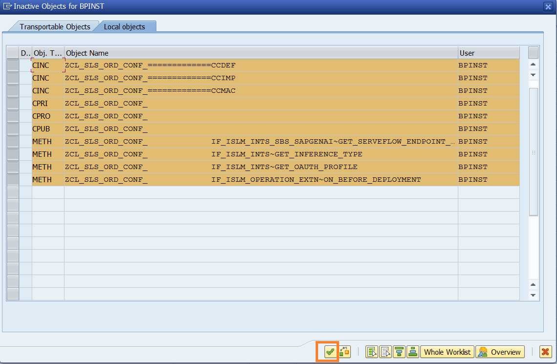 ZCL, such asZCL_SLS_ORD_CONF_###, where ### is your attendee id mentioned in the cheat sheet. And click the tick icon.