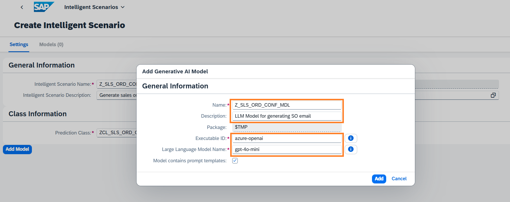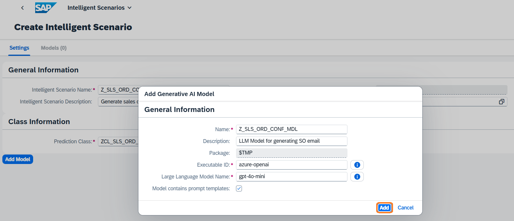 The Add Generative AI Model screen will pop up. Enter the below details: