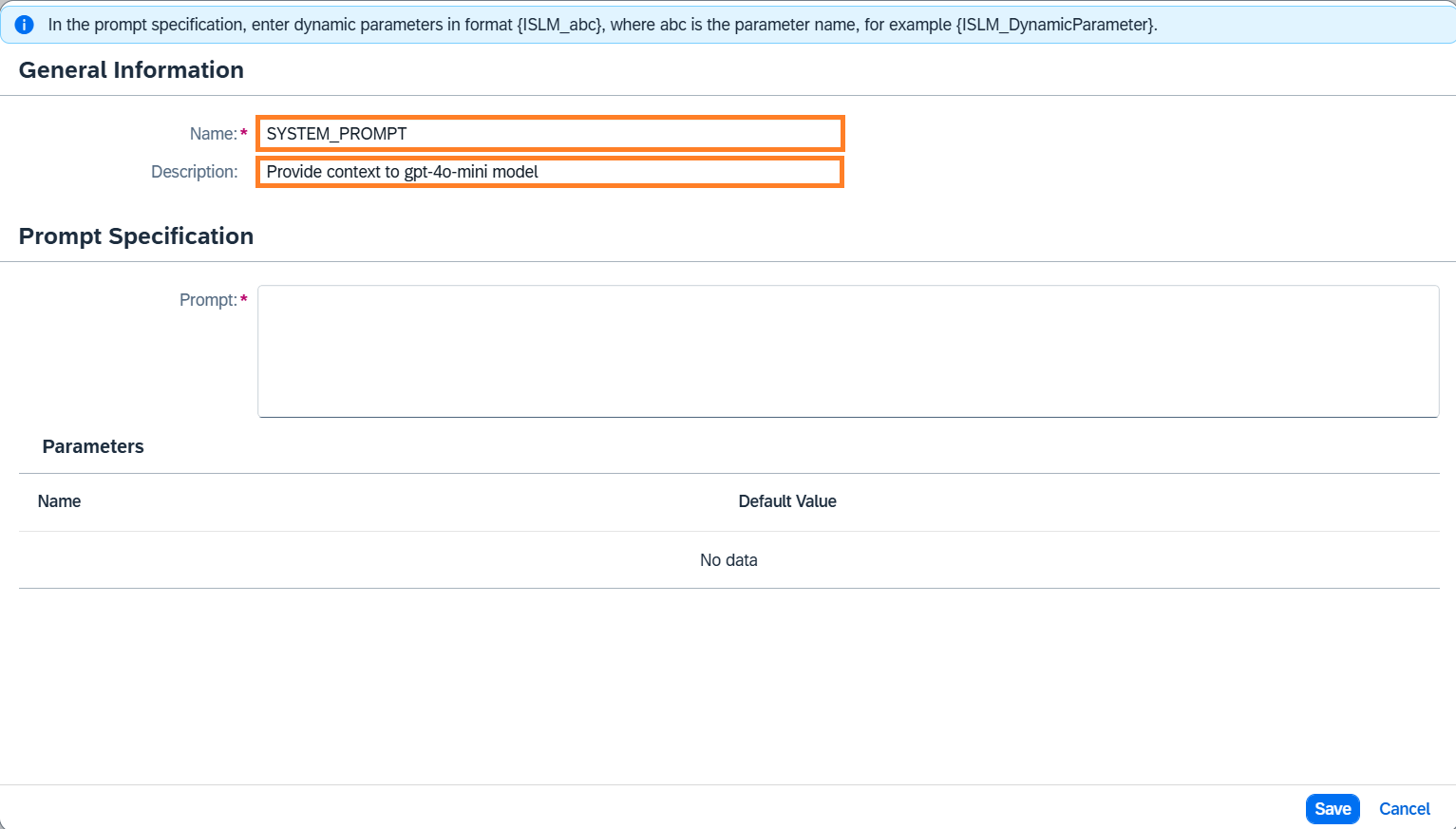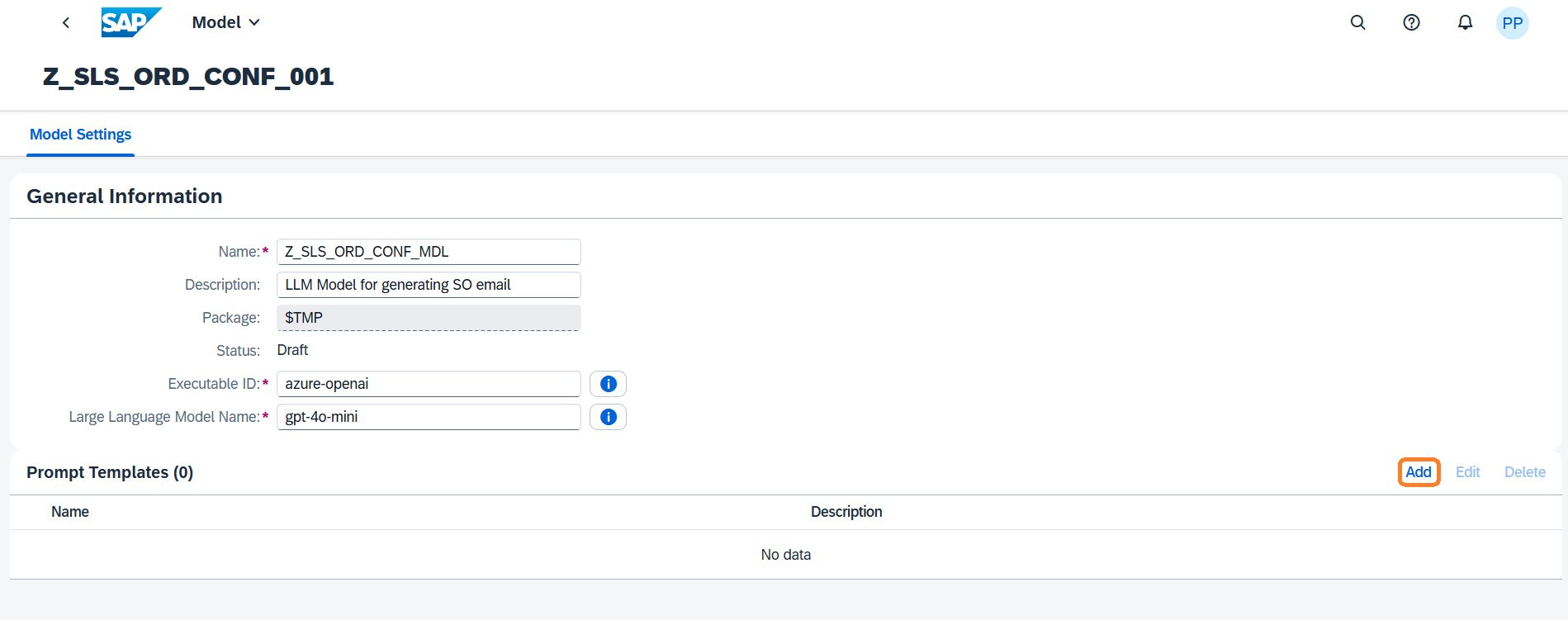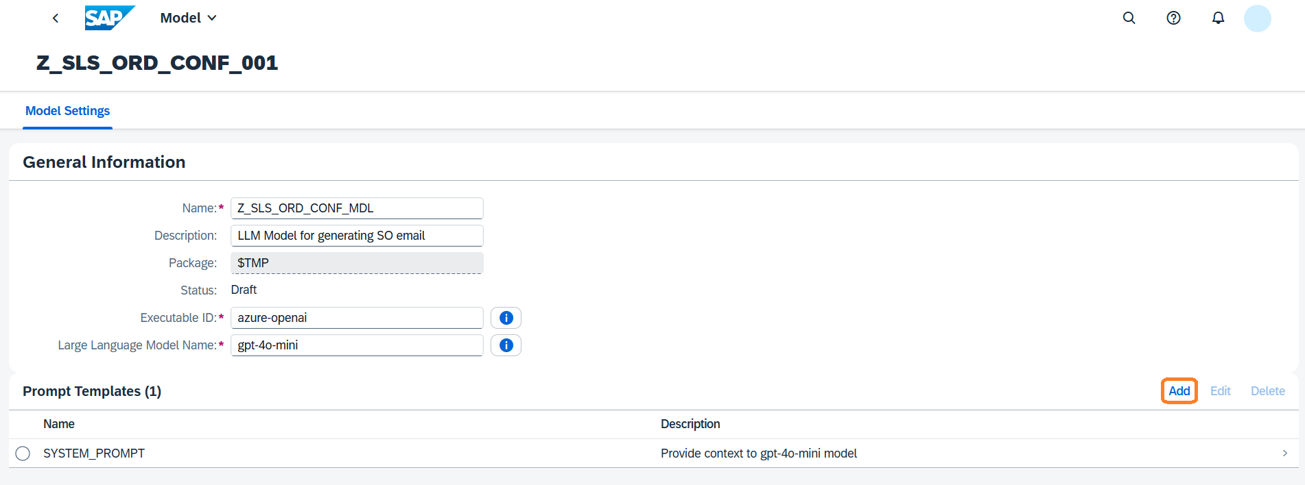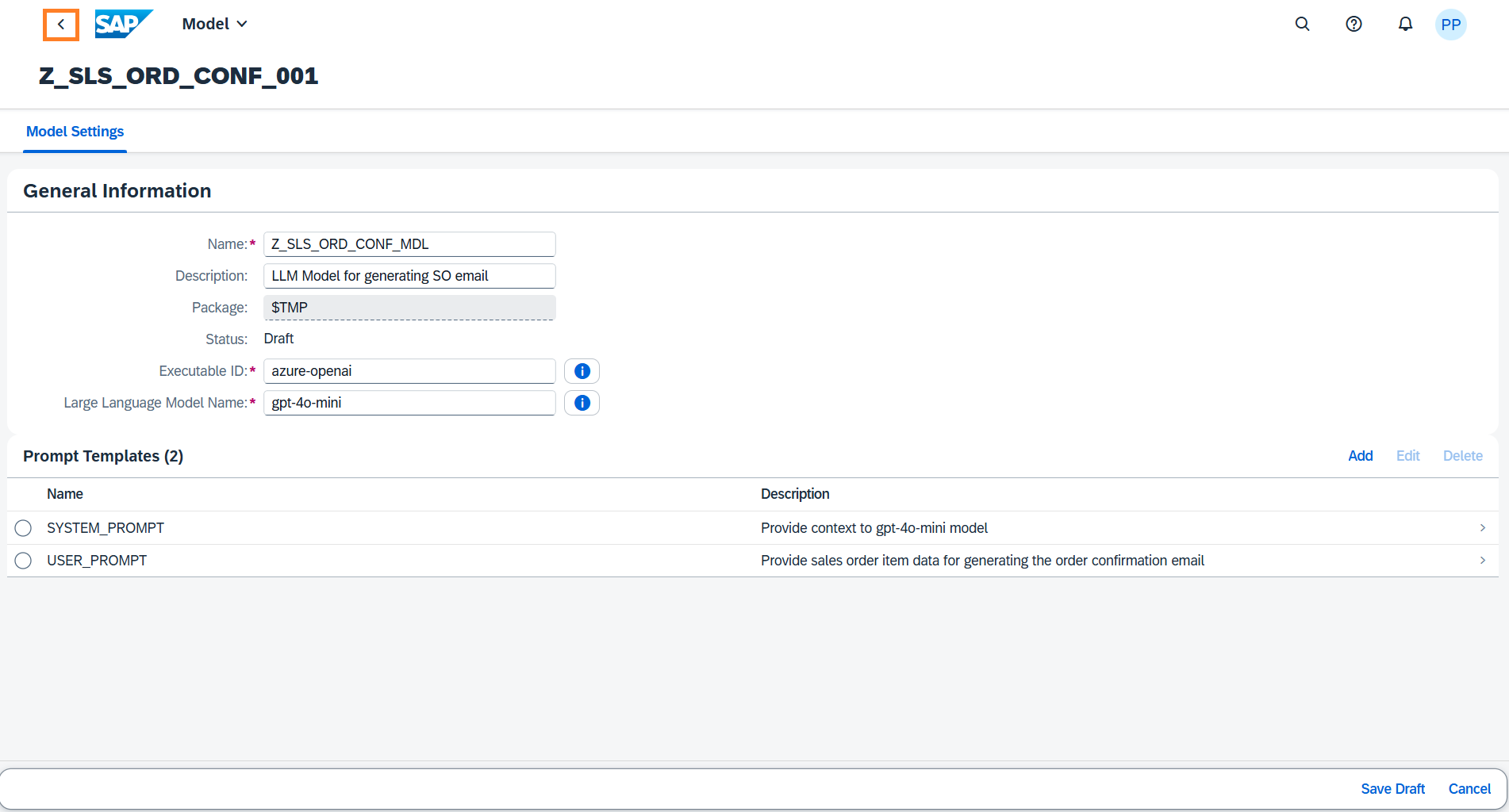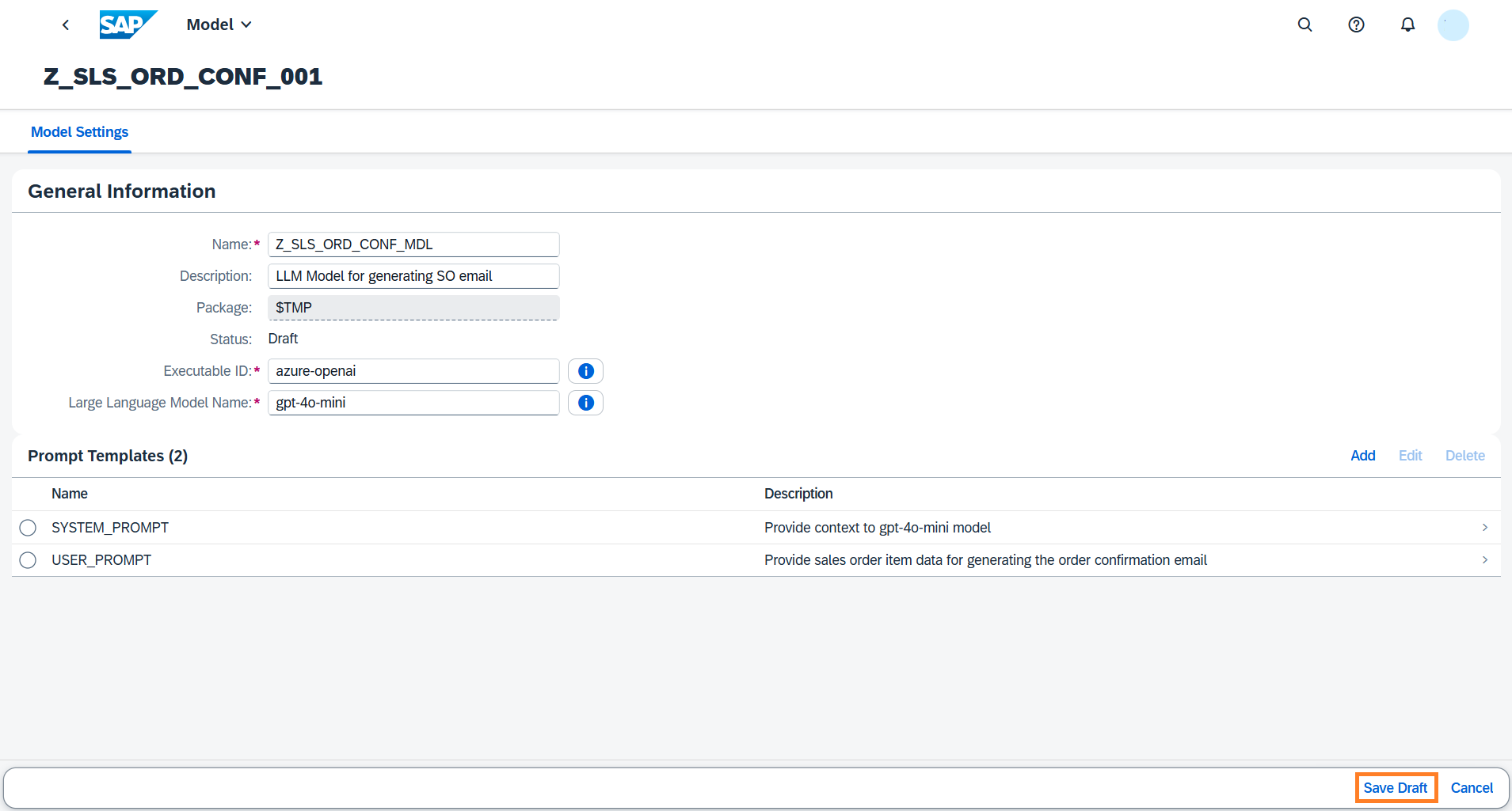 The added prompt should be visible in the Prompt Templates table. Click the Save Draft button.