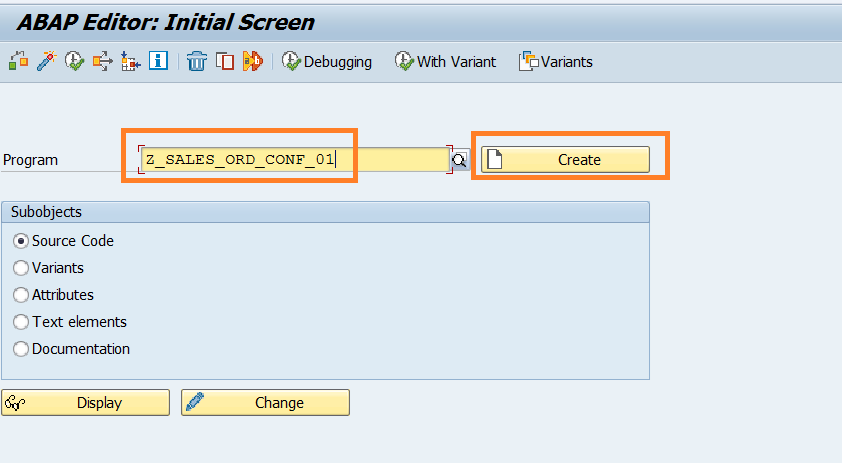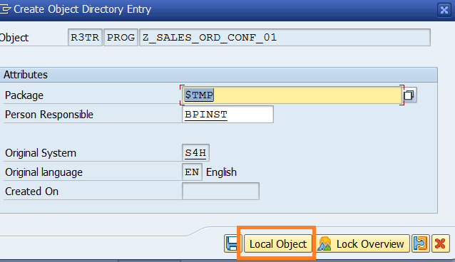 Z_SALES_ORD_CONF_###, where ### is your attendee id mentioned in the cheat sheet. Click the Create button.